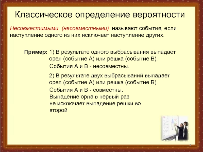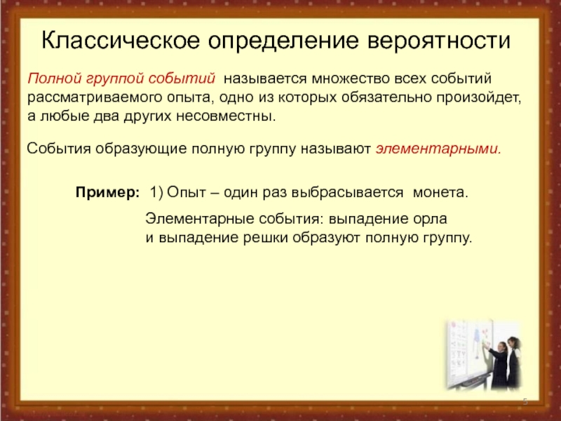 Пример: 1) Опыт – один раз выбрасывается монета.