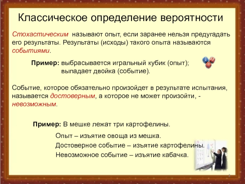 Событие, которое обязательно произойдет в результате испытания, называется достоверным, а которое не может произойти, - невозможным.
