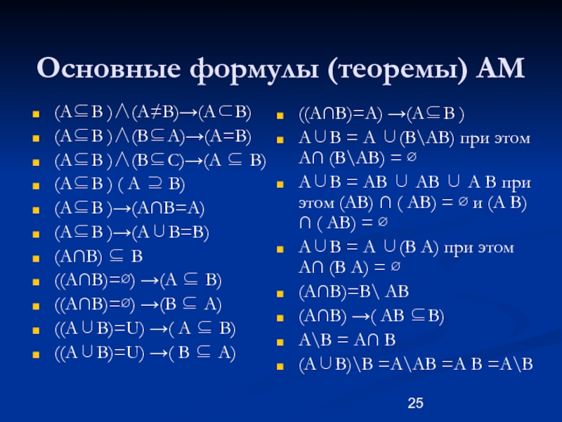 Слайд 25Основные формулы (теоремы) АМ