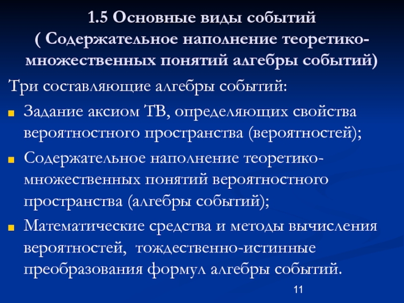 Слайд 111.5 Основные виды событий