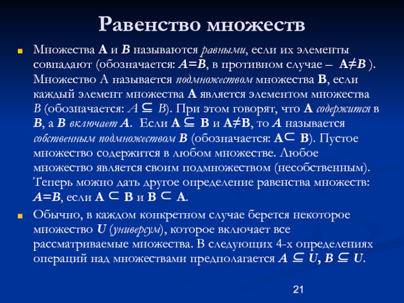 Слайд 21Равенство множеств