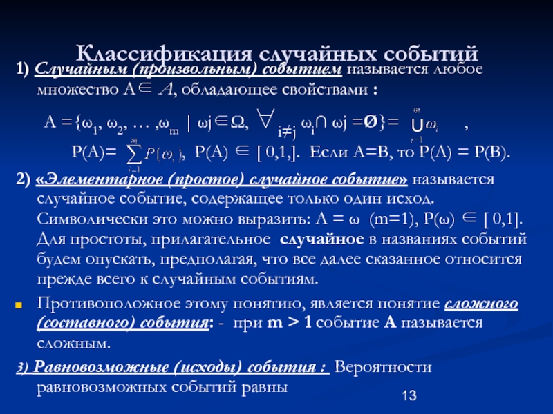 Слайд 13Классификация случайных событий