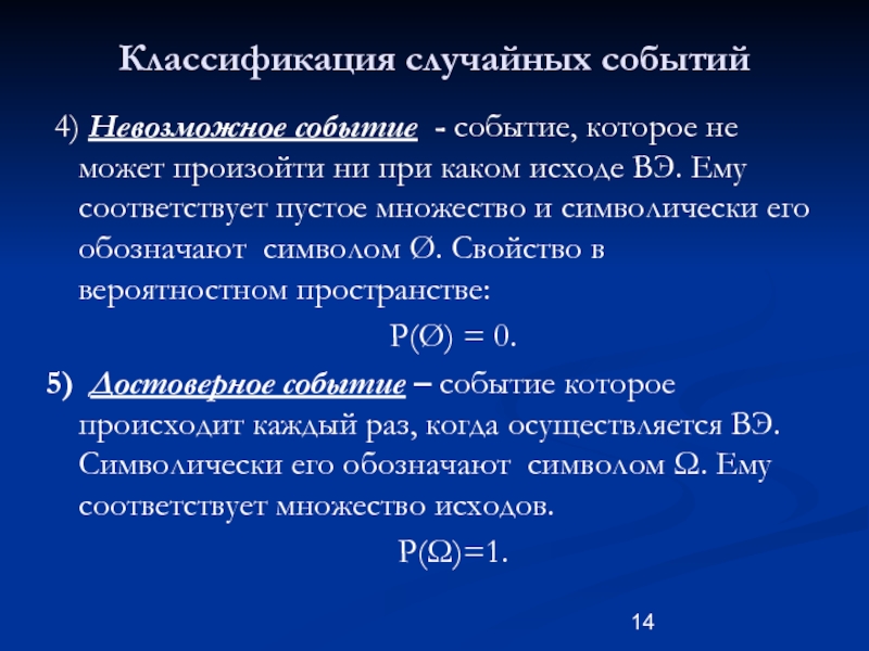 Слайд 14Классификация случайных событий
