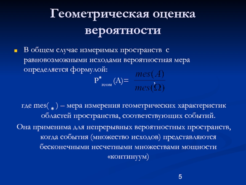 Эту величину называют геометрической оценкой вероятности случайного события А.