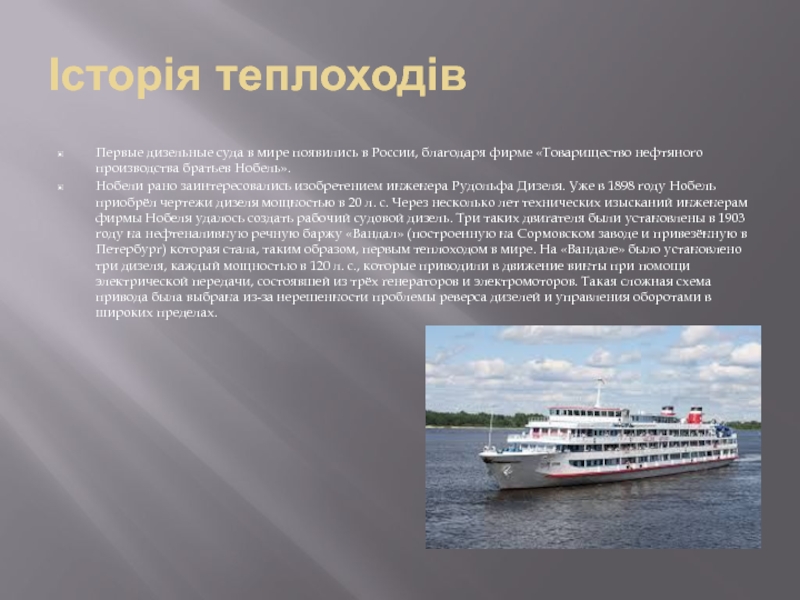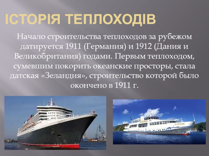 Слайд 8ІСТОРІЯ ТЕПЛОХОДІВ