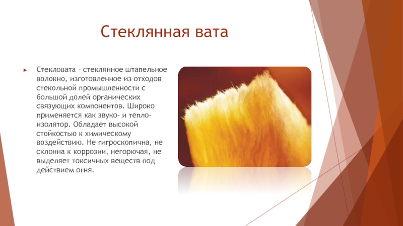 Стекловата - стеклянное штапельное волокно, изготовленное из отходов стекольной промышленности