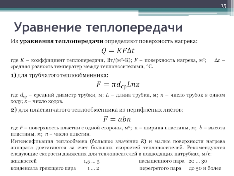 коэффициент теплопередачи в 3…4 раза больше благодаря гофрированному профилю проточной части пластины – высокая степень турбулизации потоков теплоносителей – поверхность ТО в 3…4 раза меньше;
