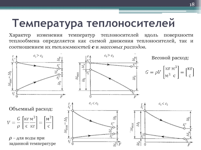 При прямотоке температура холодного теплоносителя не может быть выше конечной температуры греющего.