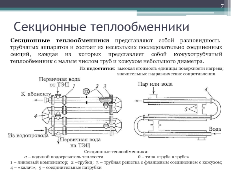 а – водяной подогреватель теплосети б – типа «труба в трубе»