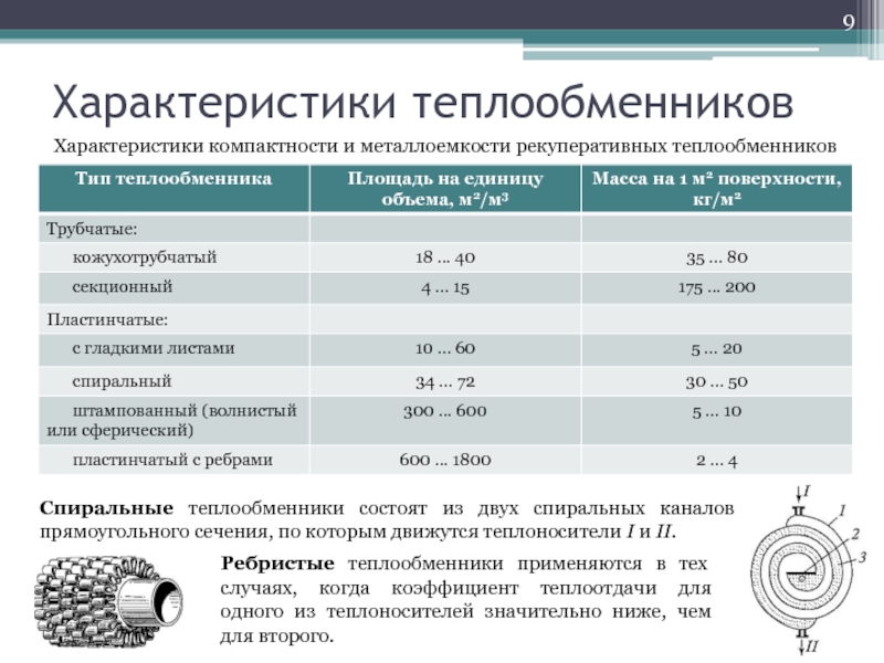 Характеристики компактности и металлоемкости рекуперативных теплообменников