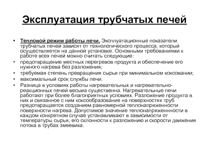 от технологического процесса, который осуществляется на данной установке. Основными требованиями к работе всех печей можно считать следующие: