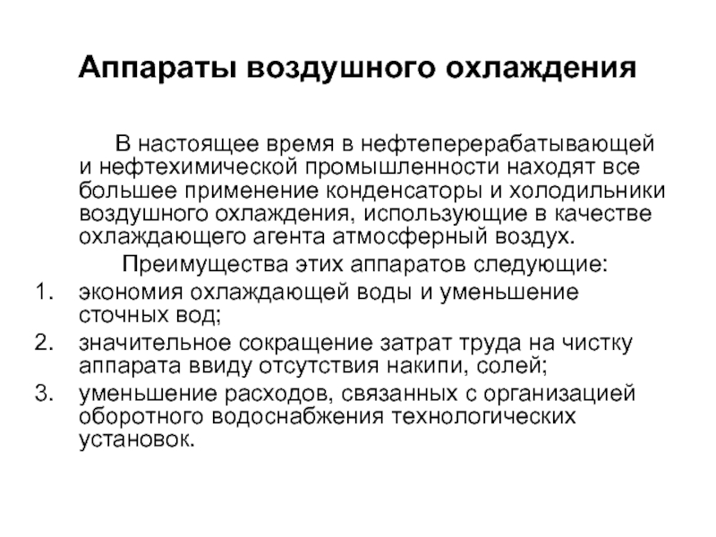 К недостаткам использования воздуха следует отнести сравнительно низкий коэффициент теплоотдачи со стороны воздуха и низкую удельную теплоемкость, вследствие чего требуемый массовый расход воздуха должен быть значителен.