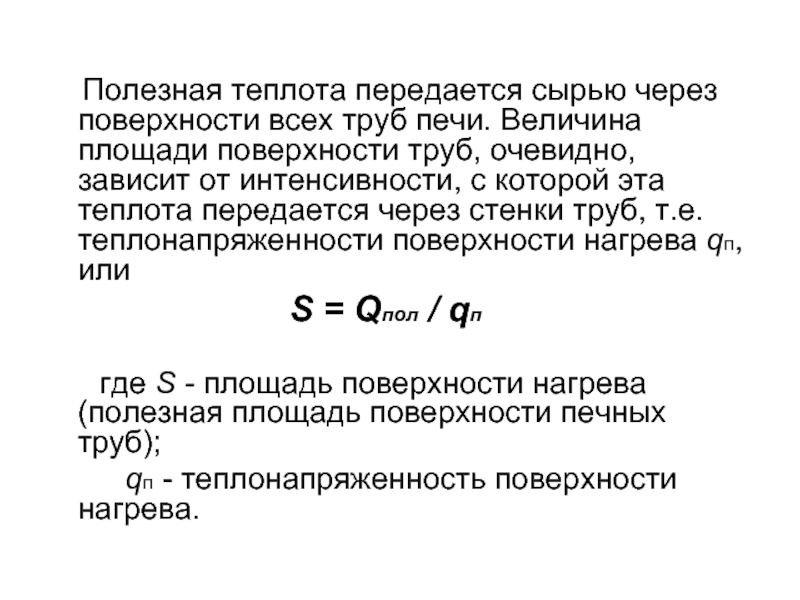 Разница в условиях работы нагревательных и нагревательно-реакционных печей весьма существенна. Нагревательные печи работают при более благоприятных условиях. Разложение продукта в них и связанное с ним коксообразование на поверхностях труб предотвращается созданием равномерной теплонапряженности поверхности нагрева. Допустимое значение теплонапряженнности в каждом конкретном случае устанавливают в зависимости от температуры сырья, его склонности к разложению и скорости движения потока в трубах змеевика.