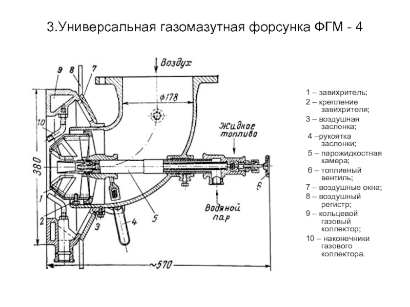 Слайд 1083.Универсальная газомазутная форсунка ФГМ - 4