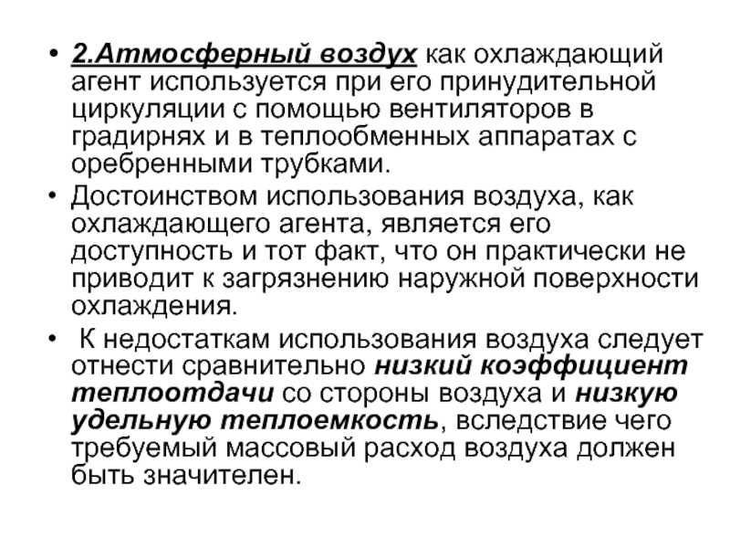 2.Атмосферный воздух как охлаждающий агент используется при его принудительной циркуляции с