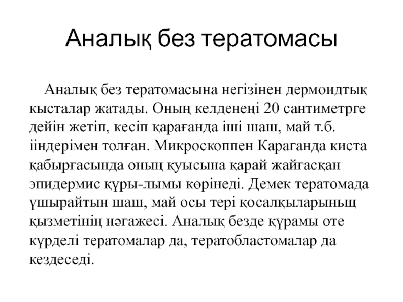 Слайд 10Аналық без тератомасы