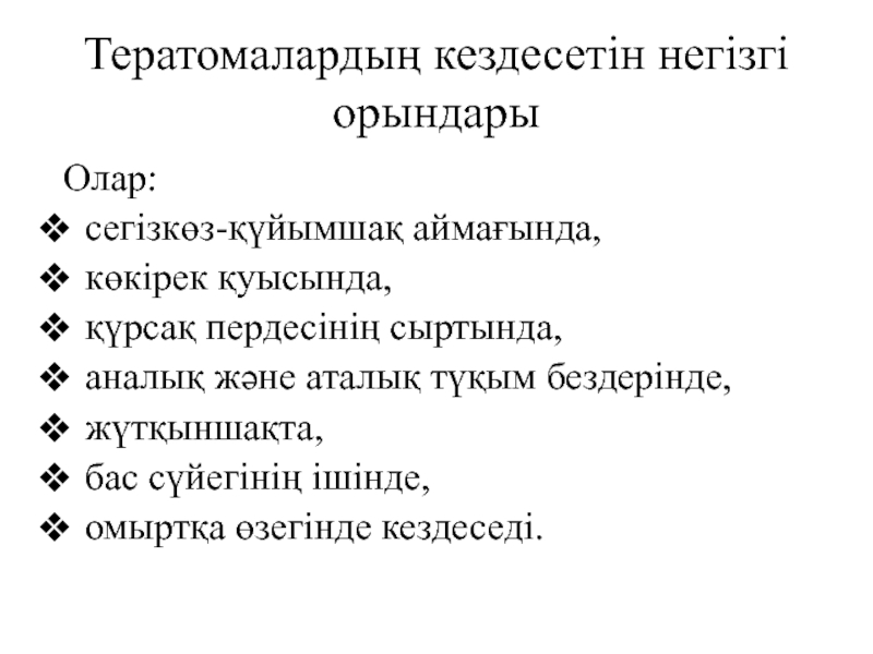 Слайд 9Тератомалардың кездесетін негізгі орындары