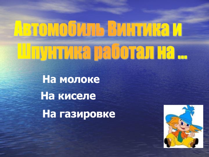 Слайд 8Автомобиль Винтика и Шпунтика работал на ...
