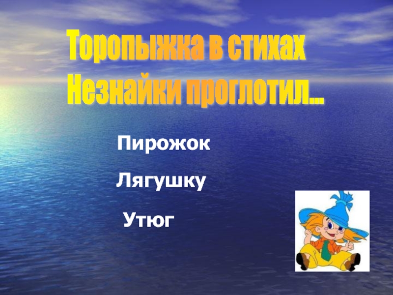 Слайд 10Торопыжка в стихах Незнайки проглотил...