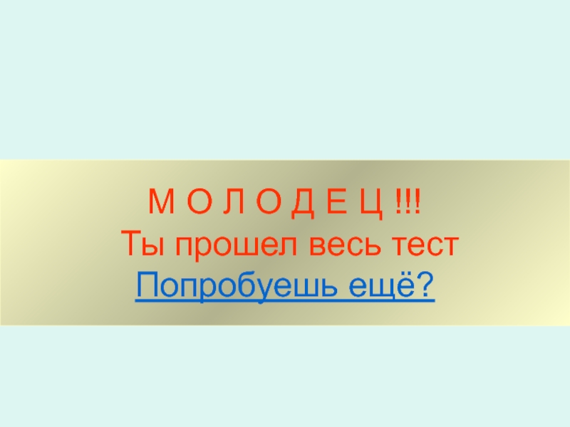 Слайд 16М О Л О Д Е Ц !!! Ты прошел