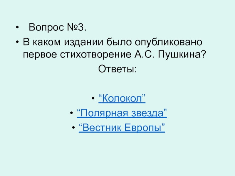 В каком издании было опубликовано первое стихотворение А.С. Пушкина?