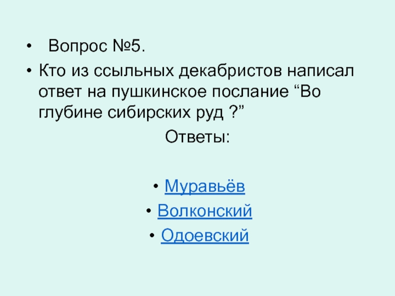 Кто из ссыльных декабристов написал ответ на пушкинское послание
