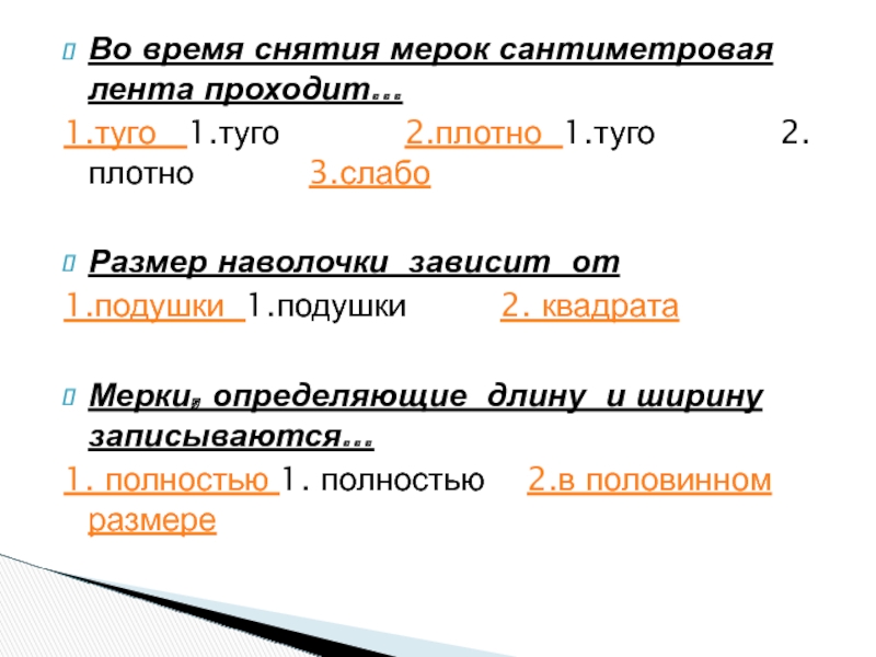Слайд 3Во время снятия мерок сантиметровая лента проходит…