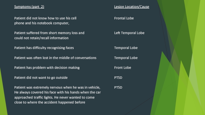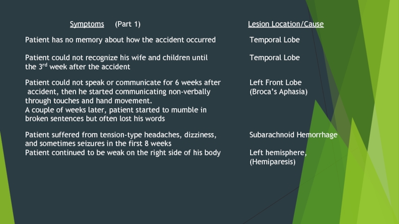 Слайд 16 Symptoms (Part 1) Lesion Location/Cause