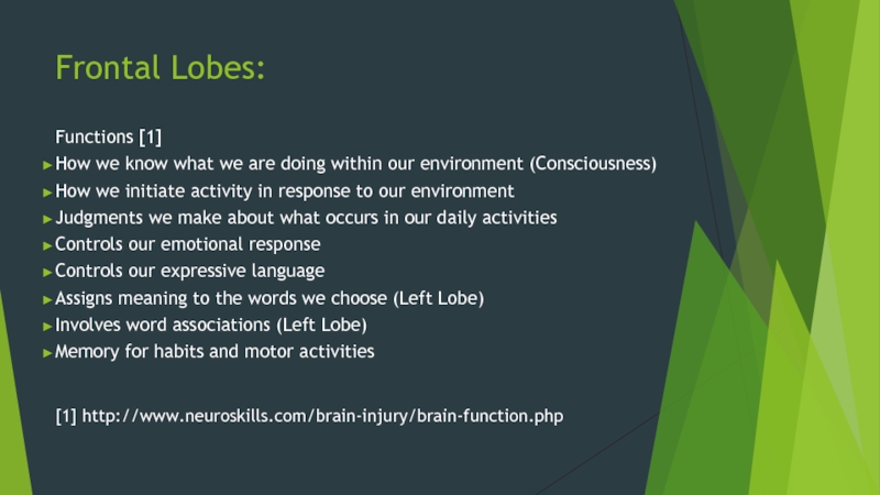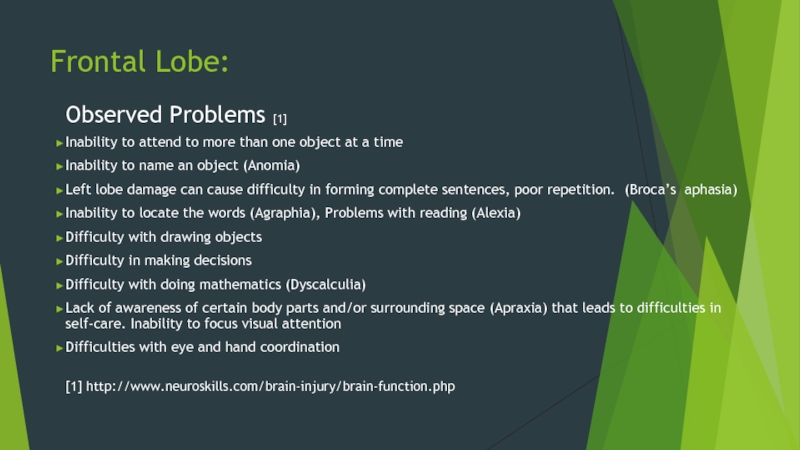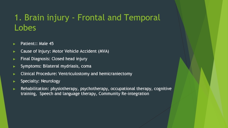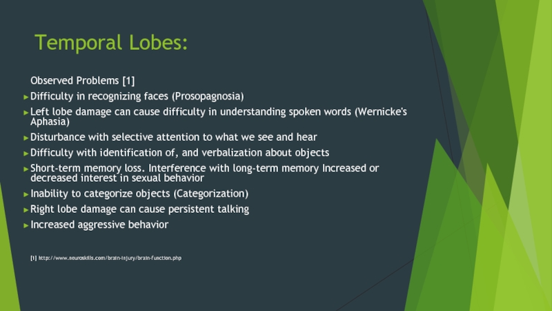 Слайд 21. Brain injury - Frontal and Temporal Lobes