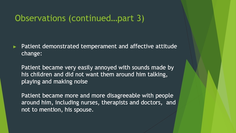 Patient became more and more disagreeable with people around him, including nurses, therapists and doctors, and not to mention, his spouse.