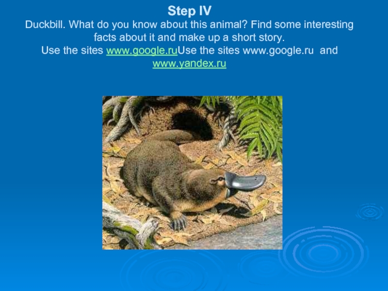 Слайд 6Step IV Duckbill. What do you know about this animal? Find some