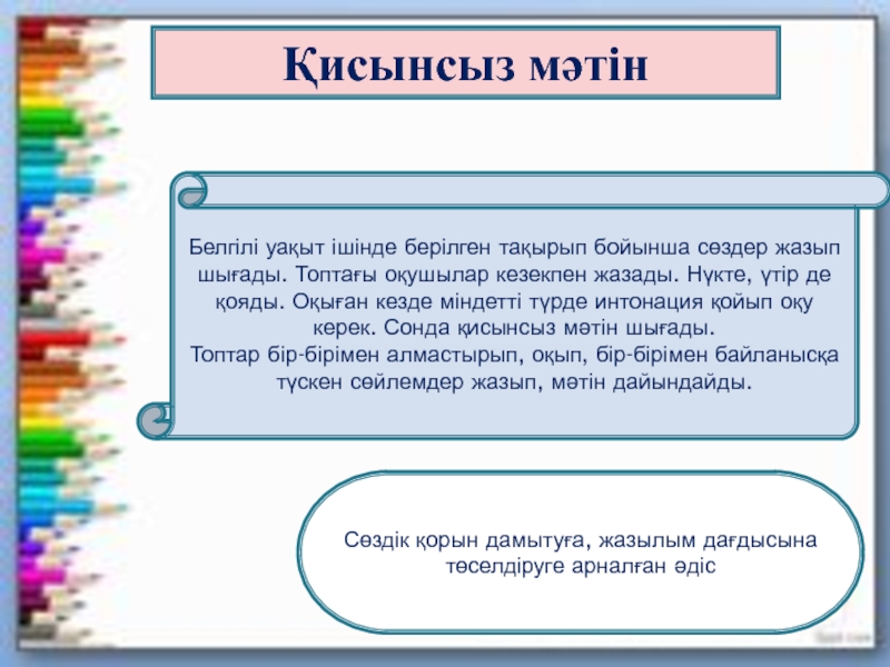 Сөздік қорын дамытуға, жазылым дағдысына төселдіруге арналған әдіс