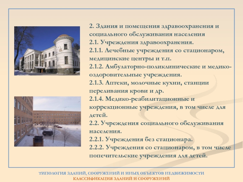 ТИПОЛОГИЯ ЗДАНИЙ, СООРУЖЕНИЙ И ИНЫХ ОБЪЕКТОВ НЕДВИЖИМОСТИ