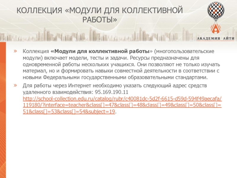 Слайд 32КОЛЛЕКЦИЯ «МОДУЛИ ДЛЯ КОЛЛЕКТИВНОЙ РАБОТЫ»