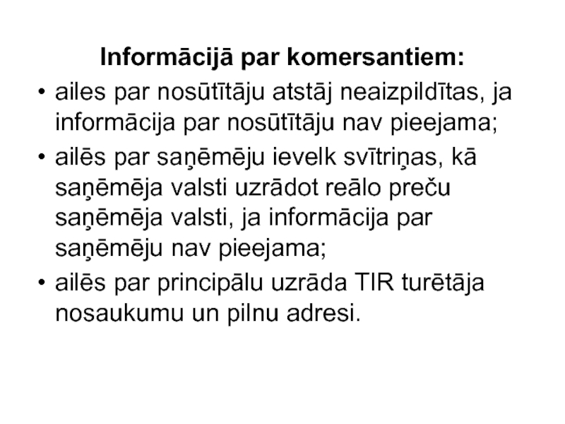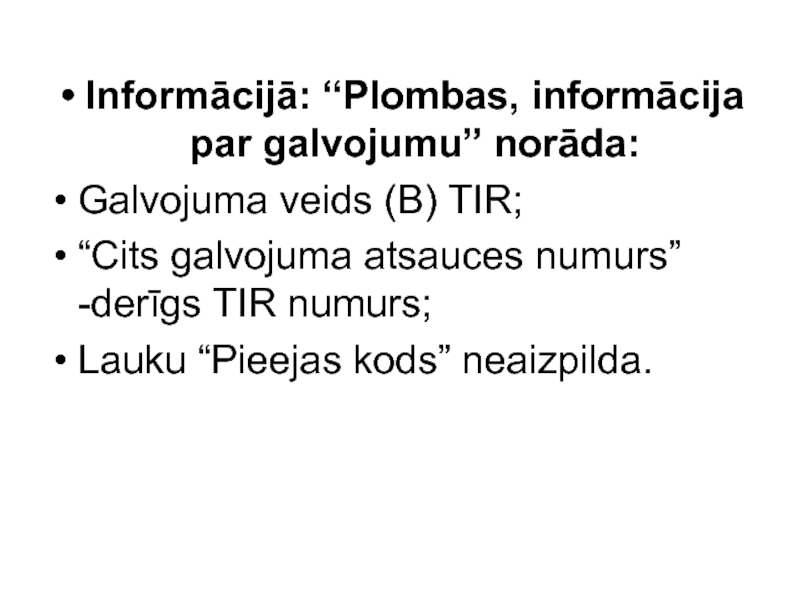 Слайд 16Lai pilnīgi noformētu TIR tranzīta deklarāciju, jāaizpilda arī lauki, kas attiecas