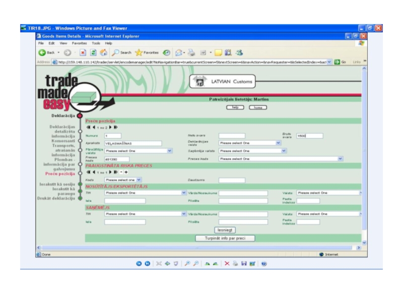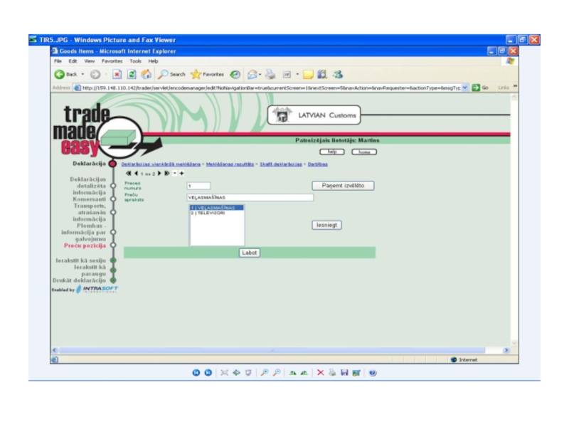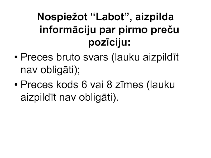 Слайд 11Nospiežot “Labot”, aizpilda informāciju par pirmo preču pozīciju: