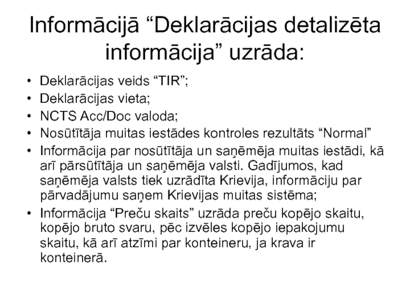 Слайд 2Informācijā “Deklarācijas detalizēta informācija” uzrāda: