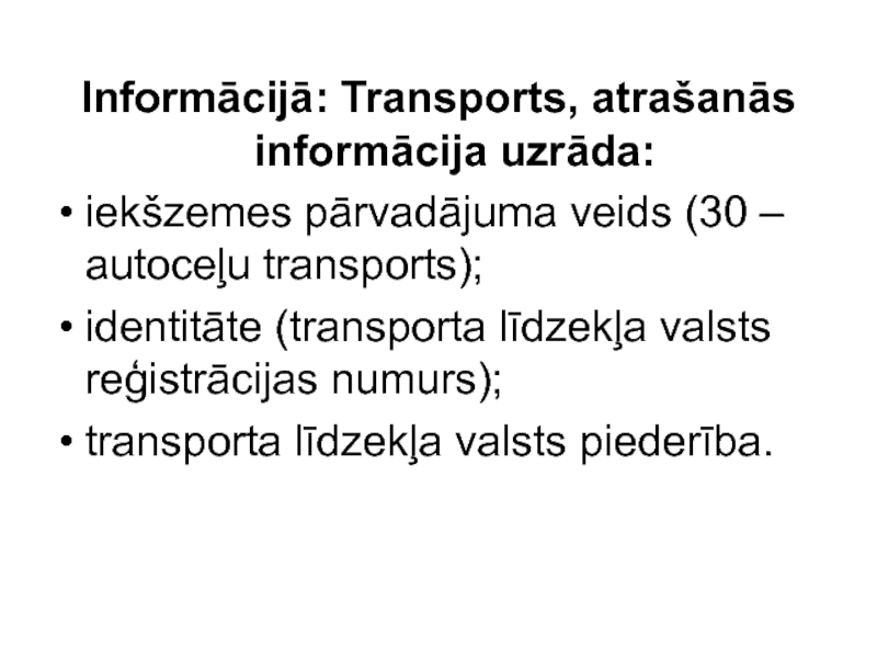 Слайд 6Informācijā: Transports, atrašanās informācija uzrāda: