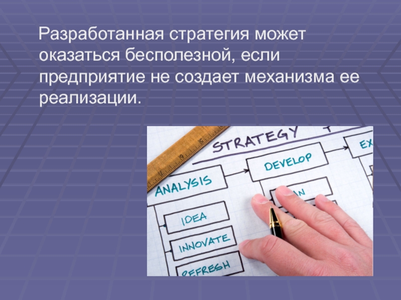 Слайд 22 Разработанная стратегия может оказаться бесполезной, если предприятие не создает