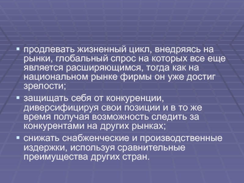 Слайд 6продлевать жизненный цикл, внедряясь на рынки, глобальный спрос на которых все