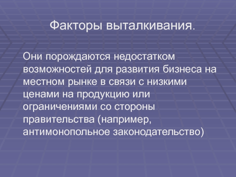 развития бизнеса на местном рынке в связи с низкими ценами на продукцию или ограничениями со стороны правительства (например, антимонопольное законодательство)
