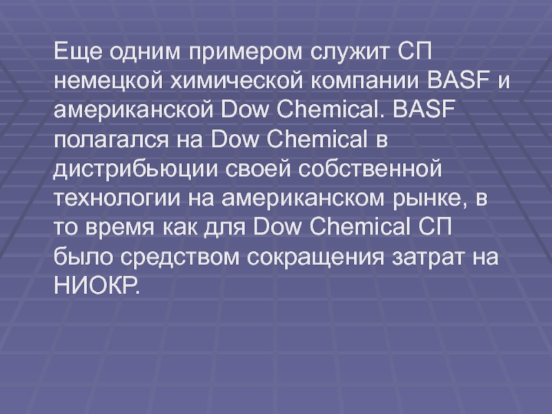 Слайд 17 Еще одним примером служит СП немецкой химической компании BASF