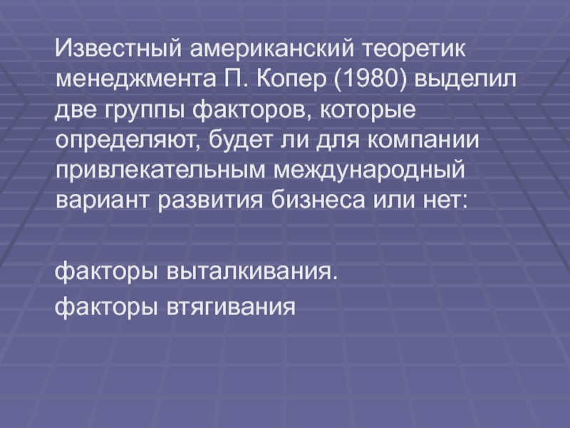 Слайд 2 Известный американский теоретик менеджмента П. Копер (1980) выделил две