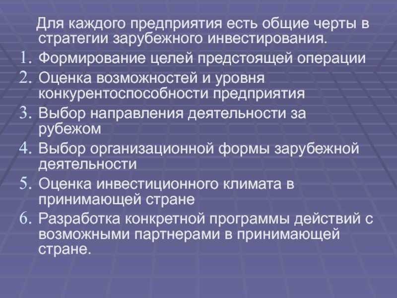 Слайд 7 Для каждого предприятия есть общие черты в стратегии зарубежного