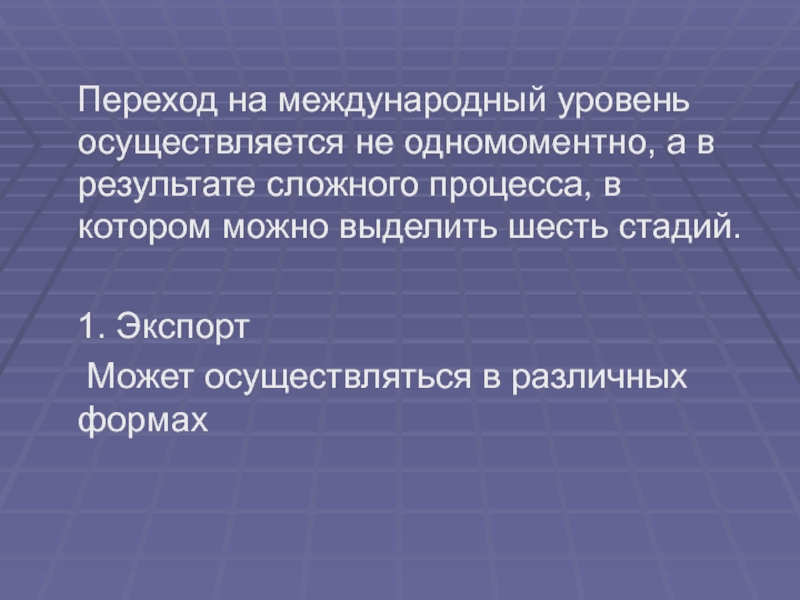 Слайд 8 Переход на международный уровень осуществляется не одномоментно, а в