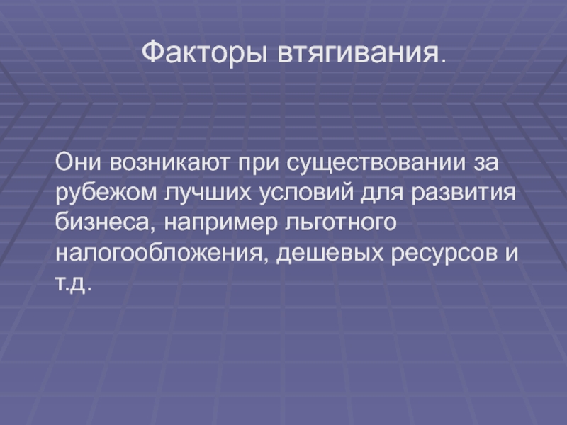группы факторов, которые определяют, будет ли для компании привлекательным международный вариант развития бизнеса или нет:
