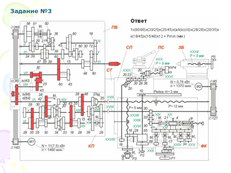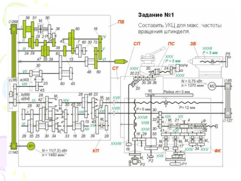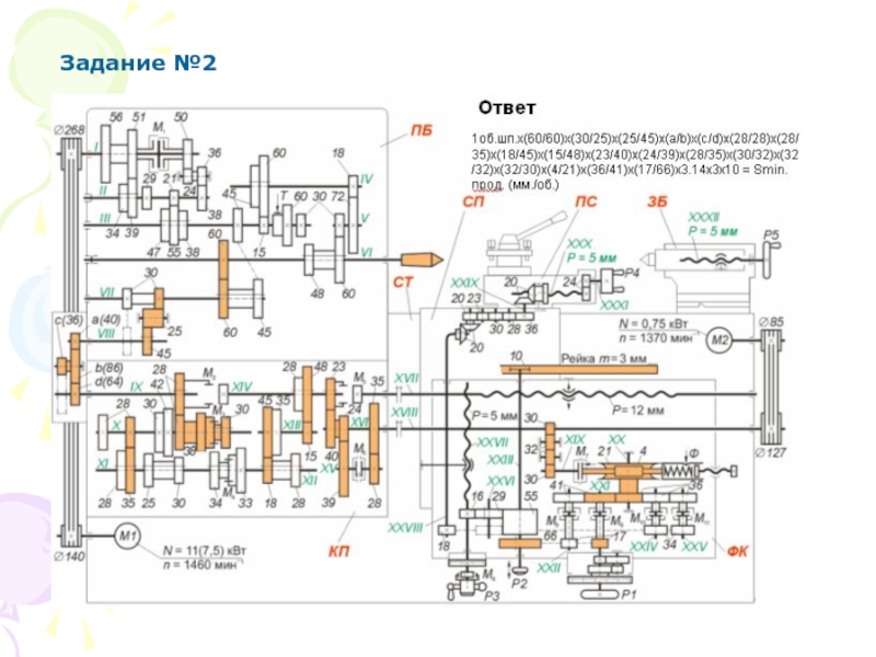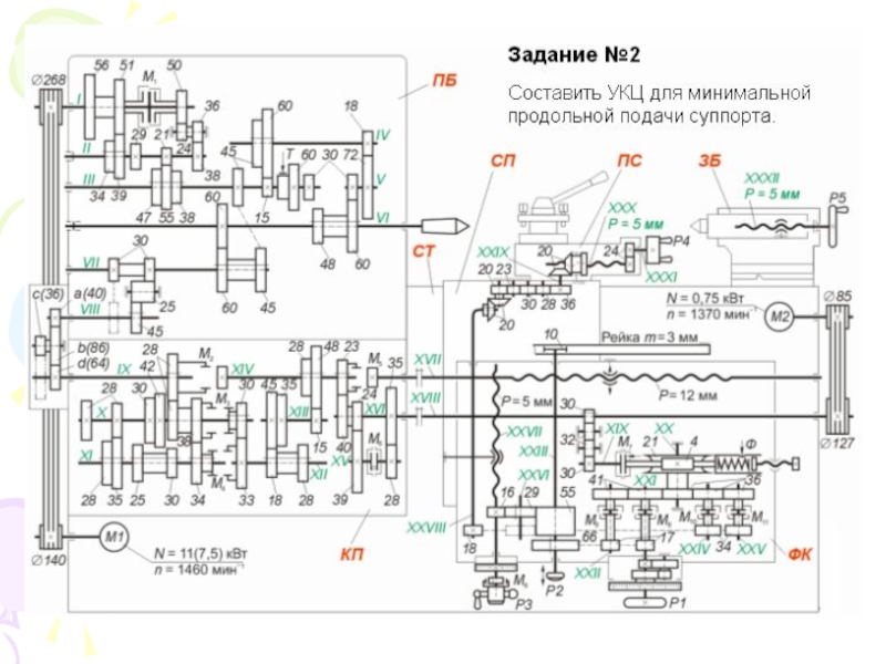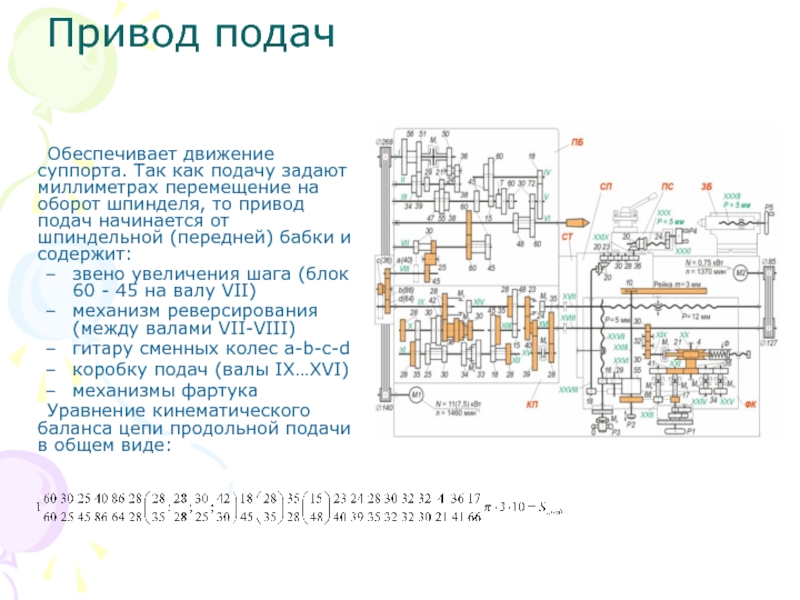 Коробка подач (поз. 8) предназначена для регулирования подачи и включения ходового винта. Коробка подач связана со шпинделем станка гитарой со сменными зубчатыми колесами.