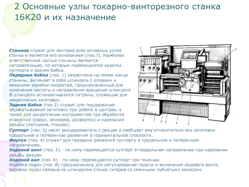 Ходовой вал (поз. 6) - по нему перемещается суппорт при точении.