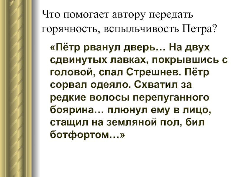 «Внутренний жест» - приём, заключающийся в использовании глаголов с целью передачи психологического состояния героя.