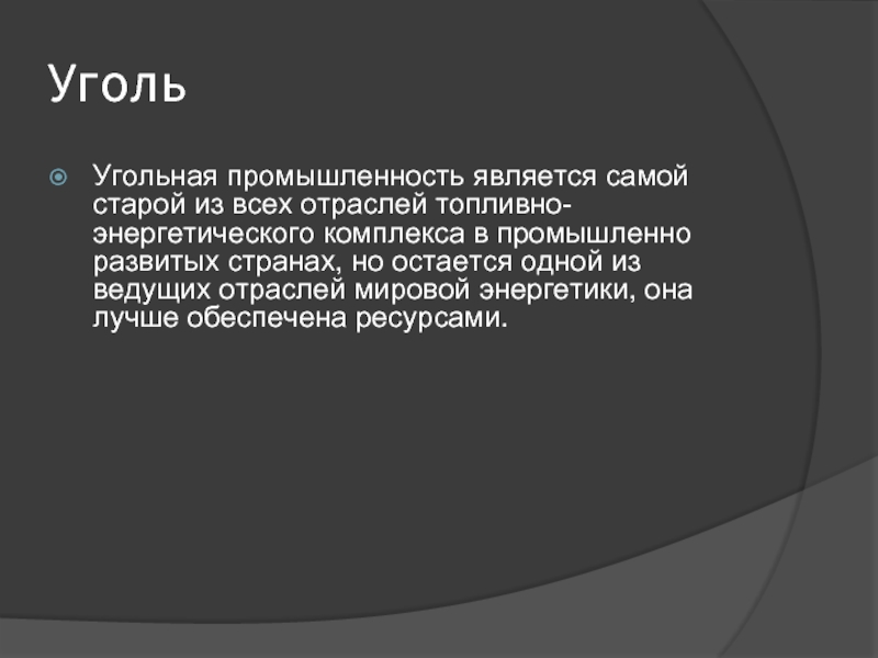 промышленно развитых странах, но остается одной из ведущих отраслей мировой энергетики, она лучше обеспечена ресурсами.